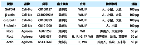 西美杰為您推薦Cali-Bio和Agrisera公司經過驗證的,高質量的內參抗體,產品如下: