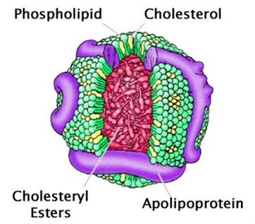 脂蛋白由脂質和蛋白質以非共價作用結合而組成,其外層是磷脂(phospholipids)、未酯化的膽固醇(cholesterol)和蛋白質,核心是中性脂質,包括膽固醇酯(cholesteryl esters)和三酰基甘油(TAG)。載脂蛋白(Apolipoprotein)是一種蛋白質,它與其他親水脂性分子一起圍繞在脂質周圍,共同構成脂蛋白。這種結構讓脂蛋白能夠通過水基循環,特別是血液和淋巴循環進行體內運輸。