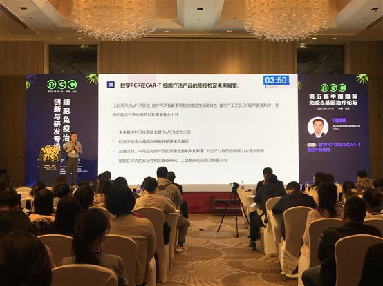 本次論壇西美杰特邀達普生物周國輝博士為與會人員帶來了“數字PCR方法在CAR-T質控中的應用”的專題講座。周國輝博士開發了一種基于數字PCR方法的儀器及微流控芯片系統,從質量控制的角度,實現對CAR-T細胞等生物制品的質控要求。