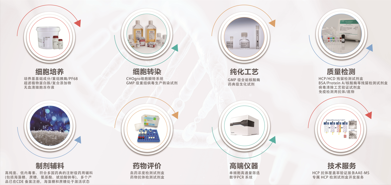 北京西美杰科技有限公司作為國內生物制品行業的一站式產品與服務供應商,本次帶來的展品將包括細胞培養基基礎成分、超濾植物蛋白胨、各類藥典級生化試劑、GMP級核酸酶、HCP/HCD檢測試劑盒、Protein A/BSA/MVM等生物工藝雜質殘留檢測試劑盒、注射級藥用輔料、抗原/抗體/底物、數字PCR系統,宿主蛋白殘留檢測試劑盒適用性驗證及專屬試劑盒開發服務等,滿足從細胞培養、轉染、純化工藝、質量控制、制劑與藥物評價等從研發到生產的一站式需求。