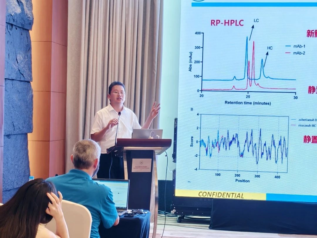 浙江大學研究員方偉杰博士作了主題為“毛細管凝膠電泳在蛋白類生物藥分析中的應用和進展”,結合具體案例和實驗數據,分別把CE-SDS在非還原條件下對重組蛋白的純度研究、還原條件下對單抗重鏈和輕鏈的異質性分析,以及CE-SDS在小蛋白和多肽類生物藥的應用與研究進展做了詳細報告,為CE-SDS方法在生物制品質量控制的應用提供了更廣闊的思路。